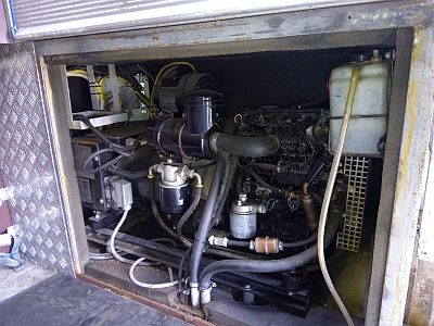 Die alte Werkstattausrüstung… insgesamt knapp 2,5Tonnen Regale, Elektroinstallation, Zusatztank, Umformer, festeingebaute Hubmittel und eben jenes Dieselaggregat…